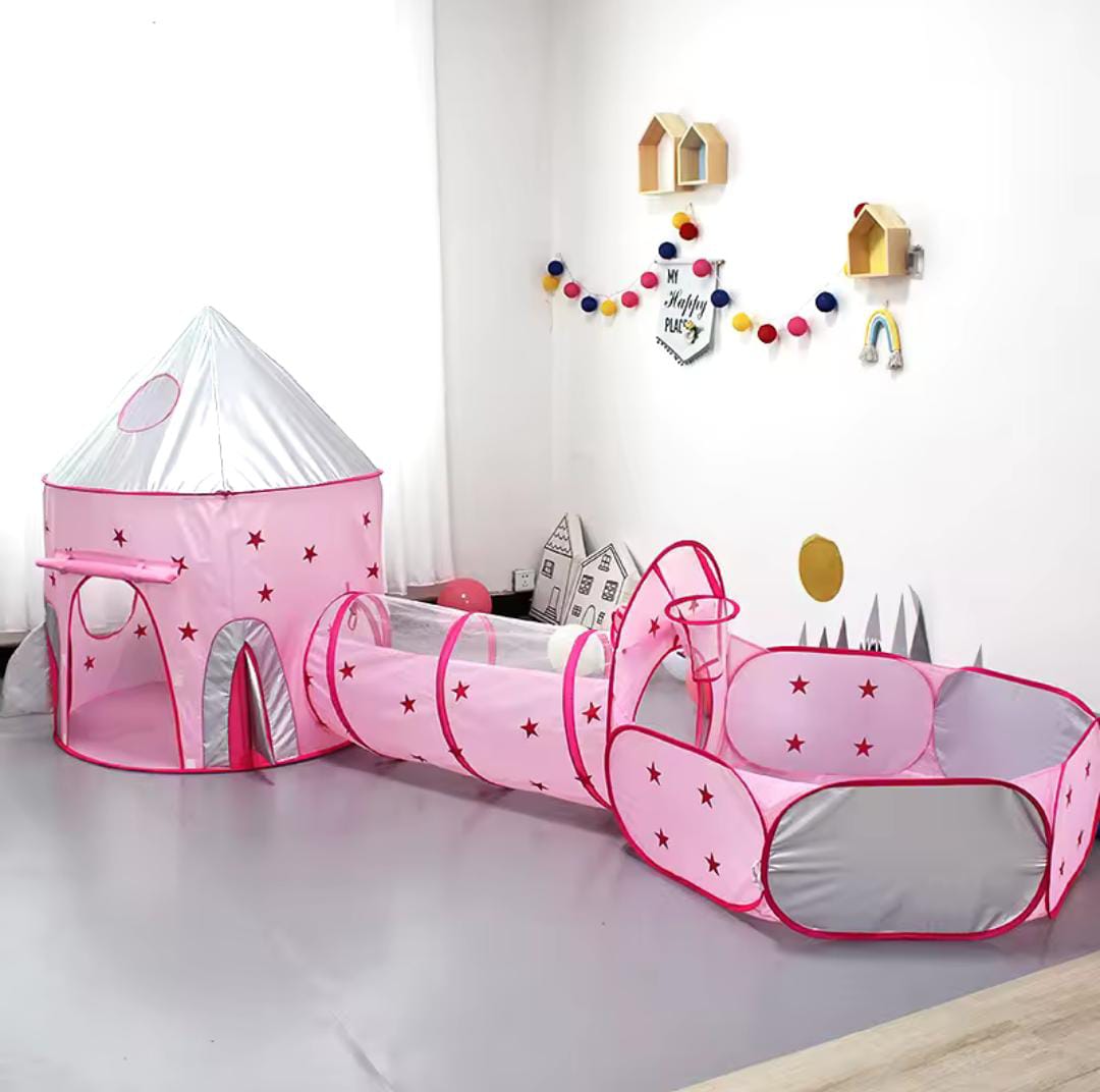 El túnel, la tienda y el pozo de bolas se pueden utilizar juntos o por separado. • Ideal para uso en interiores y exteriores • Espacio es suficiente para 2 – 4 niños • Duradera y firme gracias a su soporte de acero de alta resistencia con una flexibilidad óptima y es 100% ecológico. • Es fácil de desarmar y de almacenar, se ensambla de manera sencilla además de tener un peso liviano. • Las piezas pueden ser desarmadas y utilizadas de manera independiente. • Dimensiones de piscina 120cm de ancho * 72cm de alto. • Dimensiones de la carpa 104cm de ancho * 134,5cm de alto. • Dimensiones del túnel 120cm de largo * 46cm de diámetro. • Nota: (No incluye accesorios ni Pelotas). Colores:rosado.